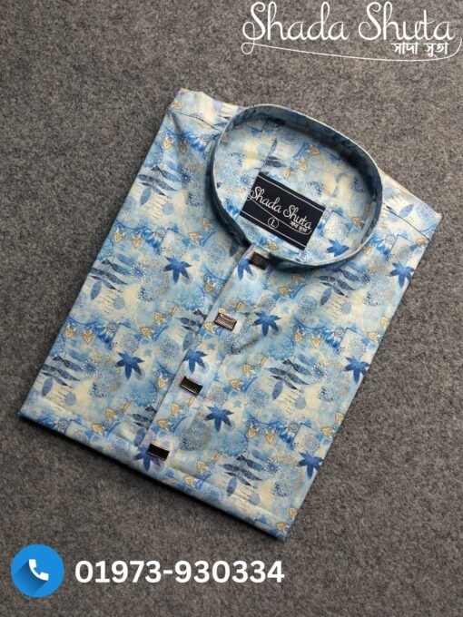 Be the first to review “Premium Indian Printed Panjabi – Light Blue Botanical Pattern Design” Cancel reply